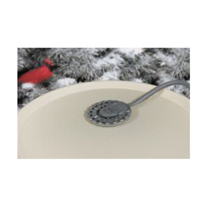 This bucket/utility de-icer uses multiple thermostats for efficient operation. Suitable for up to 30 gal. The low profile, finned design provides a large surface area, allowing the de-icer to run cooler while putting out the same amount of heat as conventional de-icers. This helps reduce the amount of mineral buildup and extend the life of the unit. Can be used in plastic containers. Durable, coated aluminum base. 6 ft cord with anti-chew protector. LOCKNDRY compatible. CULus Listed. 250 W, 120 VAC, 60 Hz. 1 year warranty.
