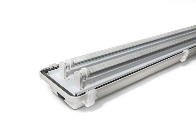 4’ (L) LED light fixtures feature super bright LED chips that produce up to 2300 Lumens per tube in a pleasing neutral daylight color that is less disruptive to livestock than traditional lighting and safe for animal and human eyes (EN62471 tested). In addition, the LED lighting does not produce RF (radio frequency) interference, emit UV (ultraviolet) or IR (infrared) radiation.