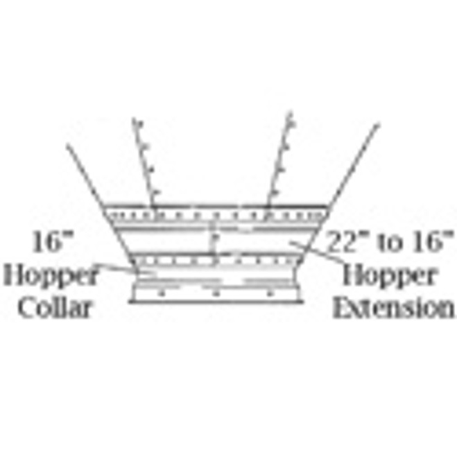 Made of heavy duty galvanized metal and will fit a 16 in hopper opening.