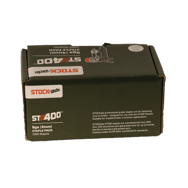 Stockade's ST400 fencing staples are engineered to be power-driven by ST400i/ST400 stapler systems.