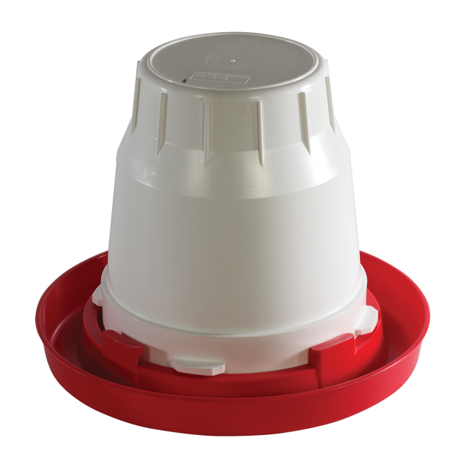 The 1 Gallon Poultry Found & Base has a 70 bird capacity. Consists of a 10" diameter, 16" tall, and the pan depth of it is 1 3/8".