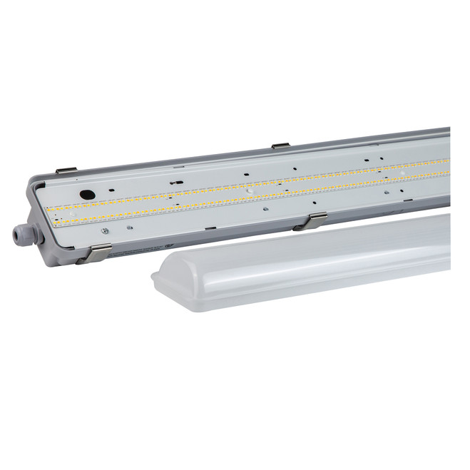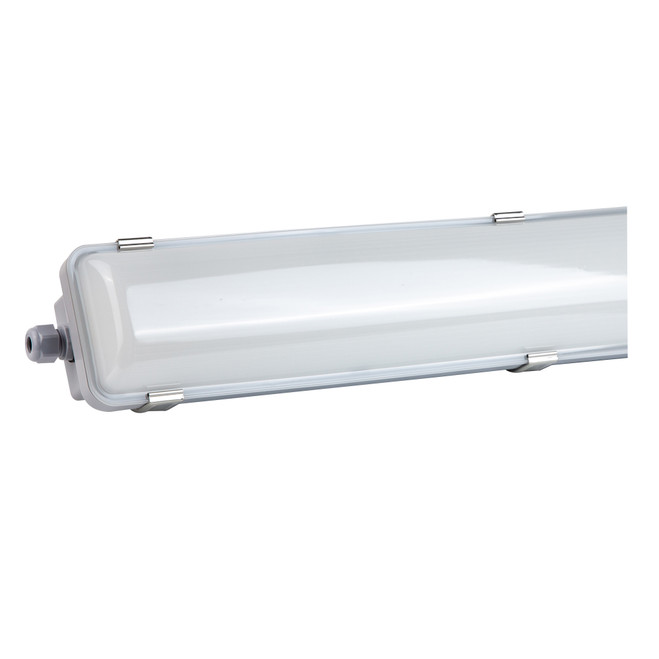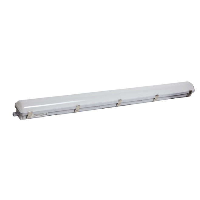 This 4 foot strip fixture features an integrated LED strip housed in white corrosion proof poly for durability. Using a 40W LED, the fixture emits 4200 lumens of neutral light. The fixture can be easily disassembled and the LED strip inside replaced for simple maintenance. The Kelvin is switchable from 3000/4000/5000 (Pre-set at 5000).
