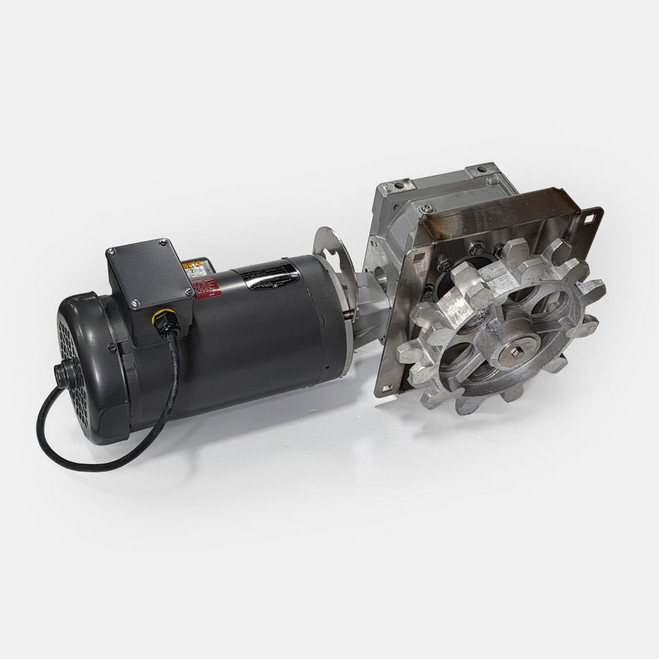 This full drive shaft motor and gearbox unit is an official replacement part for AP®/Cumberland® Chain Disk feed delivery systems. The single phase motor features 1-½ HP output and a 50 Hz frequency rating. Adapter is also included.