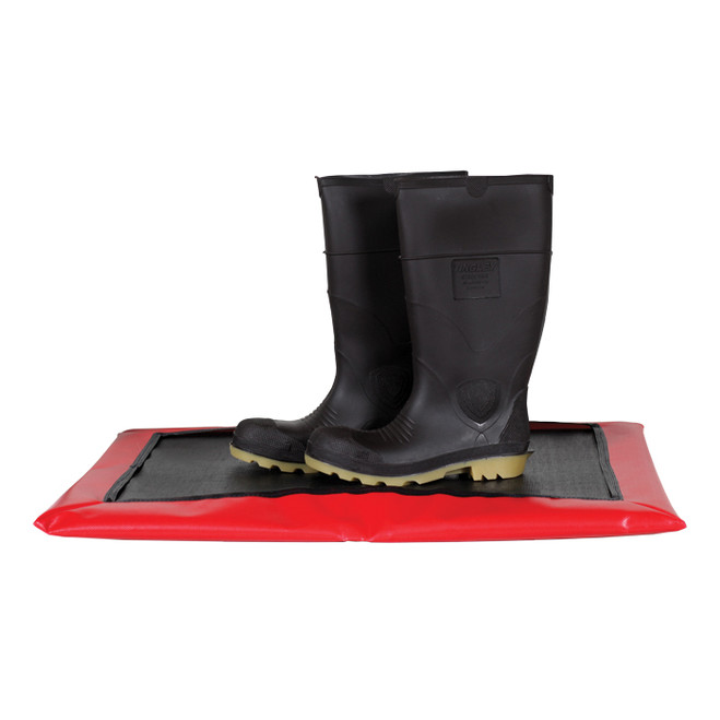 - The flexible waterproof PVC coated polyester sleeve envelopes sides and bottom of the disinfectant mat
