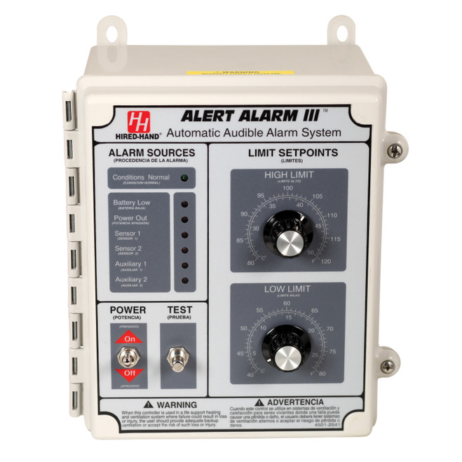 - Individual adjustments on the alert alarm iii provide for setting the high and low alarm temperatures while a front panel display contains status indicators and test functions
