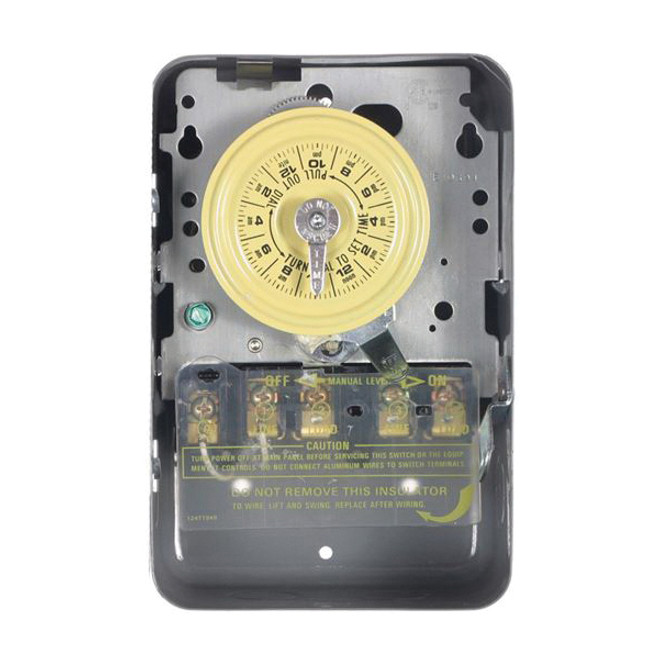 Built for durability and dependability, the Intermatic® T100 series mechanical time switch has proven it can stand the test of time. These timers can handle electrical loads up to 40 A per pole and allow for up to 12 ON/OFF operations per day at a minimum of 1 hour intervals. A manual override switch provides added convenience.