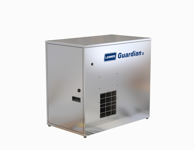 Powered by Propane gas, the AB250 generates between 160,000 and 250,000 BTU/hr. while burning 11.6 lbs/hr. of propane. Efficient, safe, and rugged, the AB250 model Guardian® is L.B. White’s answer to heating large livestock houses.