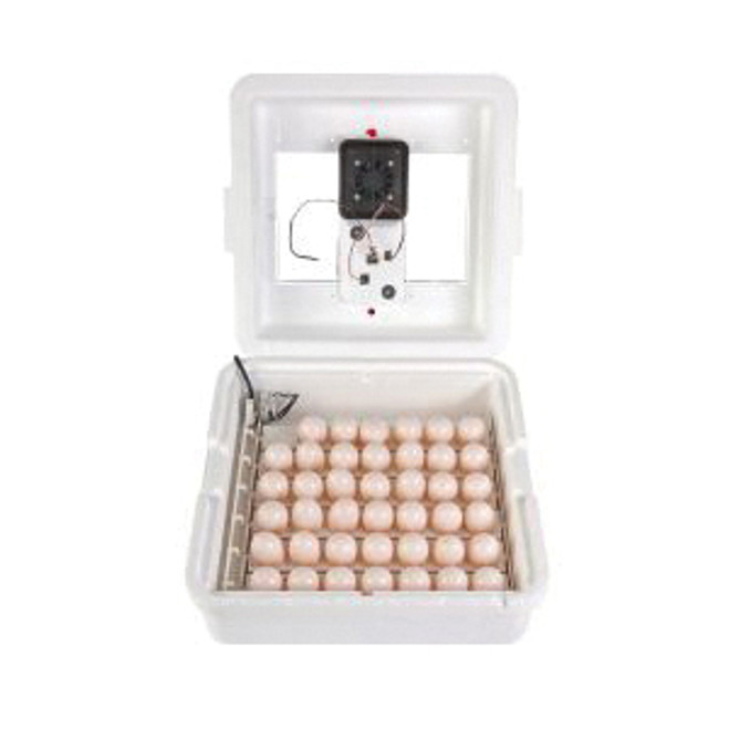 Sets the standard for incubating and hatching eggs, with updated digital technology. Built-in fan constantly circulates the air to maintain a proper temperature throughout the incubator, eliminating harmful hot and cold spots. Durable styrofoam retains warmth, generated by a gentle heating element controlled by a highly dependable, digital control board. The LCD display with LED light shows accurate temperature and humidity readings instantly. The self-regulating control board adjusts the temperature to suit varying environments. The built-in digital hydrometer and moisture channels help maintain humidity, a key factor in egg health. Plastic mesh screen safely supports eggs during hatch period and is also dishwasher safe. Two 4 x 8 in viewing windows allow for monitoring the hatching process and are great for educational purposes. Holds 41 large chicken eggs when used with the little Giant® automatic egg turner, which is included with this incubator. This product is intended for general poultry hobbyists and is not recommended for professional or commercial use or for incubating exotic birds or reptiles.