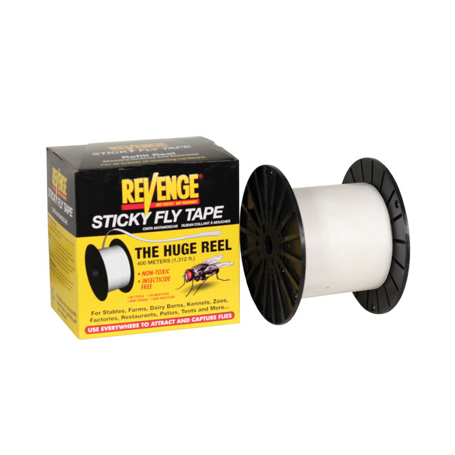 Huge, 1300 ft sticky tape refill, with a universal design to fit Revenge® or other mounting hardware. Install this reel, leading tape through your pulleys and attach to your take up spool. When a length is full of flies, just unwind a fresh length. Discard when reel is full, saving the empty reel for use as your new take up spool.