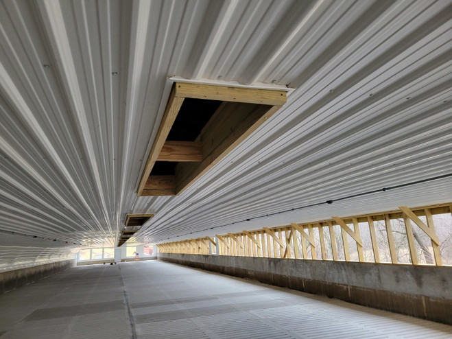 The PVC ribbed panles serve as a great alternative to metal ceiling panels. PVC panel can span 4 feet across trusses.