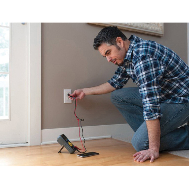 The ToolSmart™ digital multimeter reads voltage, current, resistance, temperature, and more with turn of the dial. It also allows a smartphone to serve as a second viewing screen in case conditions are dark, or there's more than one person on the job. All data goes directly from the meter to the Free ToolSmart™ smartphone app.