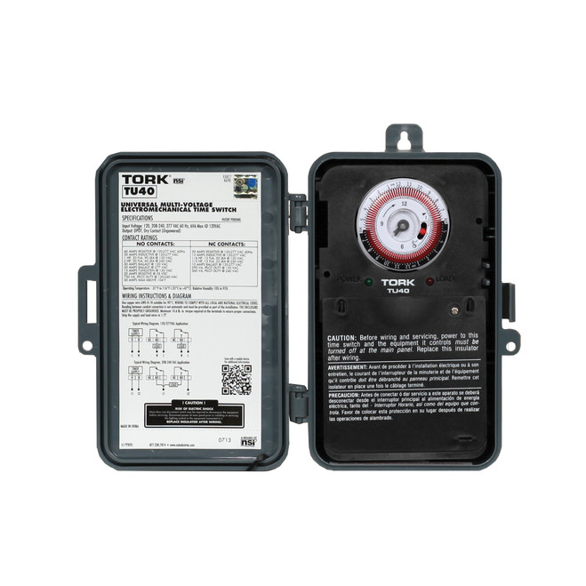 Designed for residential and commercial use cases, the TU40 from Tork® is a 24hr multi-voltage timer. Featuring automatic input voltage detection with a real time clock face and day/night markings for setting trippers.