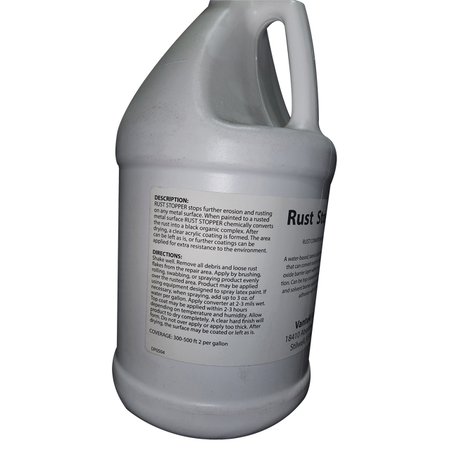 VANTEK rust converter stops rust in its tracks preventing further corrosion and rusting on metal surfaces. When applied, it chemically converts rust into a stable black compound. It will oxidize other corrosion and scale. A clear acrylic layer then forms over the converted rust that can be covered with seam tape or coated with AMC-100, EM-15 or V-thane or the clear acrylic layer will last as a stand-alone coating.