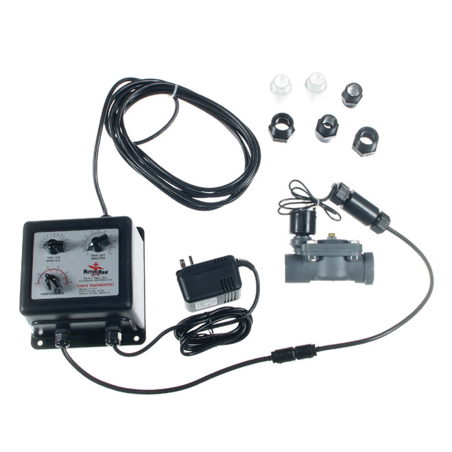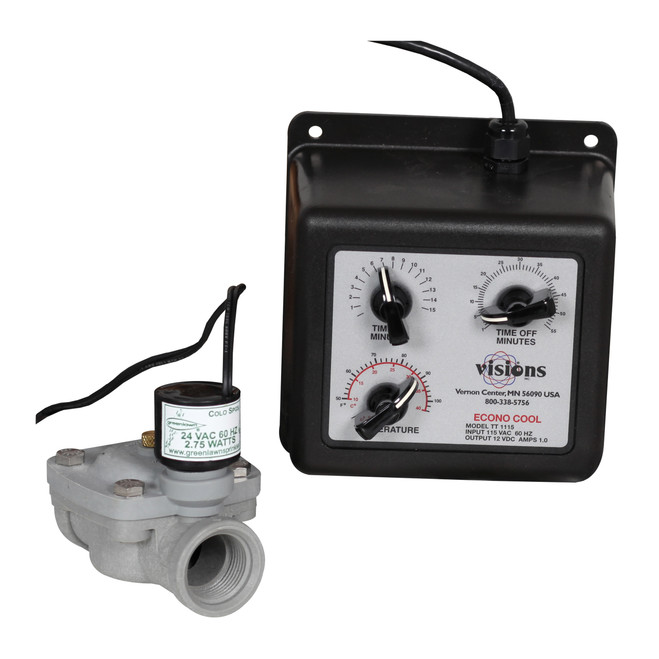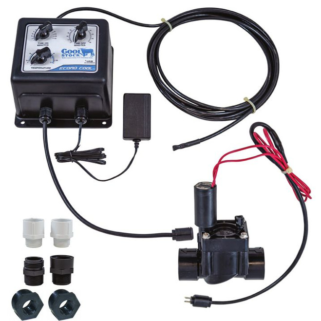 Cool Stock Controller with Solenoid Valve. Control the flow of water based on the time and temperature setting you choose. Automatically activates the solenoid valve when temps are warmer than setting.This solenoid valve is proven to provide years of reliable service. The solenoid coil is encapsulated with a captive plunger for hassle-free service- no pins and O-rings. These valves are used with Cool Stock Controllers and include a 3-prong controller plug. 1” valve includes fittings